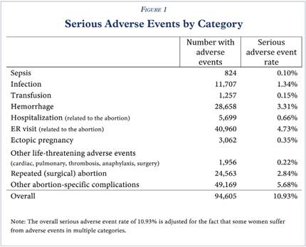 The Ethics and Public Policy Center released the largest-known study of the abortion pill to date in April 2025, finding that “10.93 percent of women experience sepsis, infection, hemorrhaging, or another serious adverse event within 45 days following a mifepristone abortion.” Over 5,600 women required hospitalization following the use of mifepristone from 2017-2023, and 40,960 visited the ER. The chart below details the 94,605 documented adverse events women experienced from taking the abortion pill.